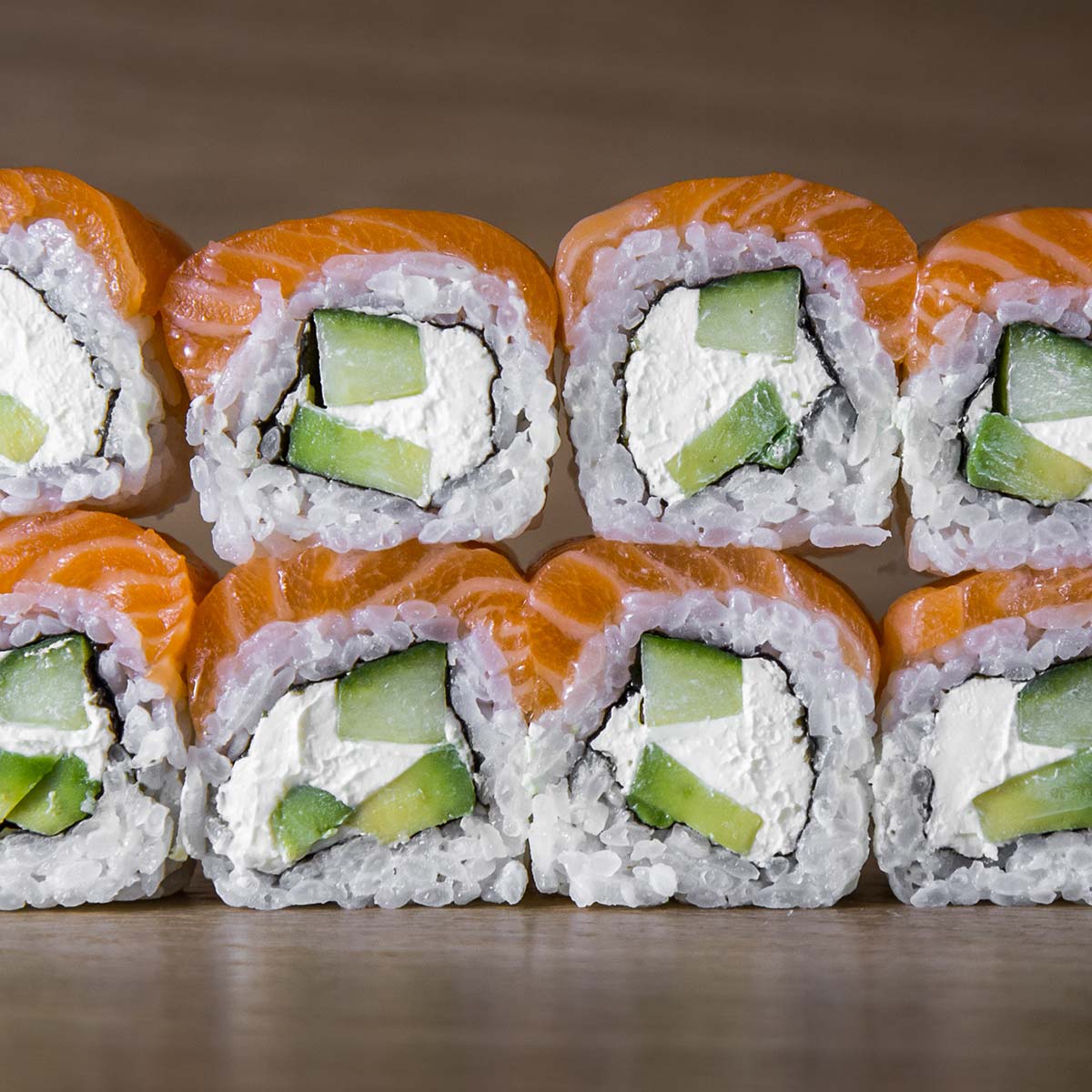 Suši Philadelphia Maki pildījumā ir svaigs lasis, Filadelfijas siers, gurķis un avokado, kas meistarīgi apliktas ar vārītiem rīsiem. Un protams visi suši tiek gatavoti īpaši Jums. Ar pārliecību varam apgalvot, ka mūsu gatavotie suši vienmēr ir svaigi un garšīgi.